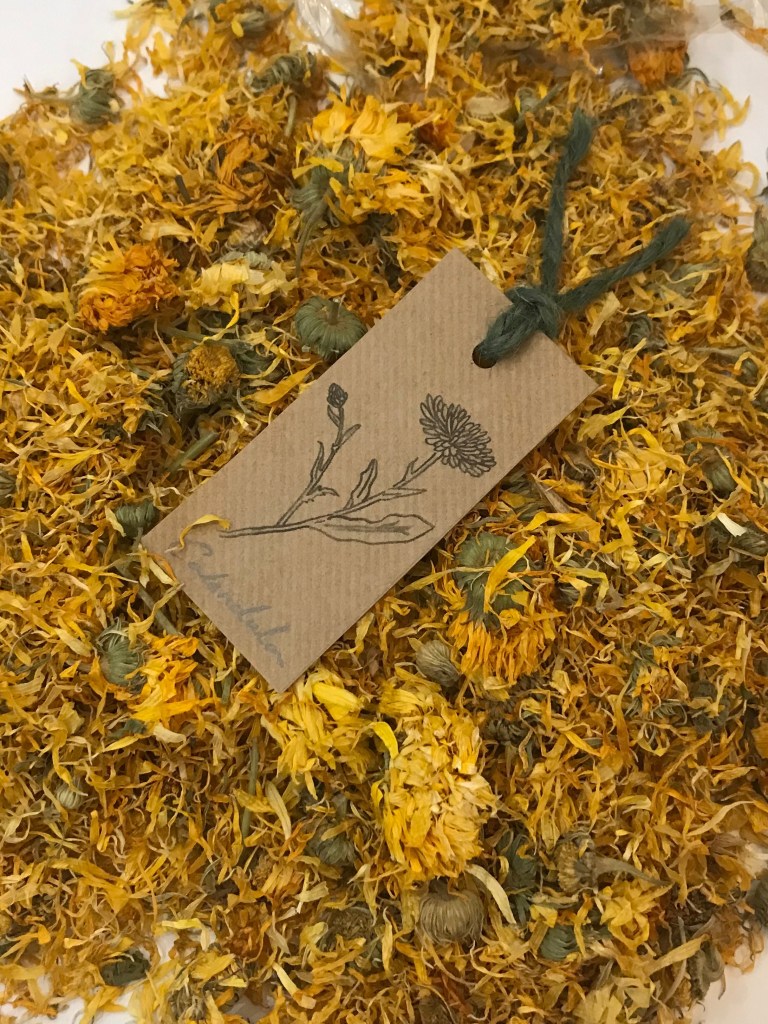 Luckily at Court Farm we had many beautiful calendula harvested and dried last summer